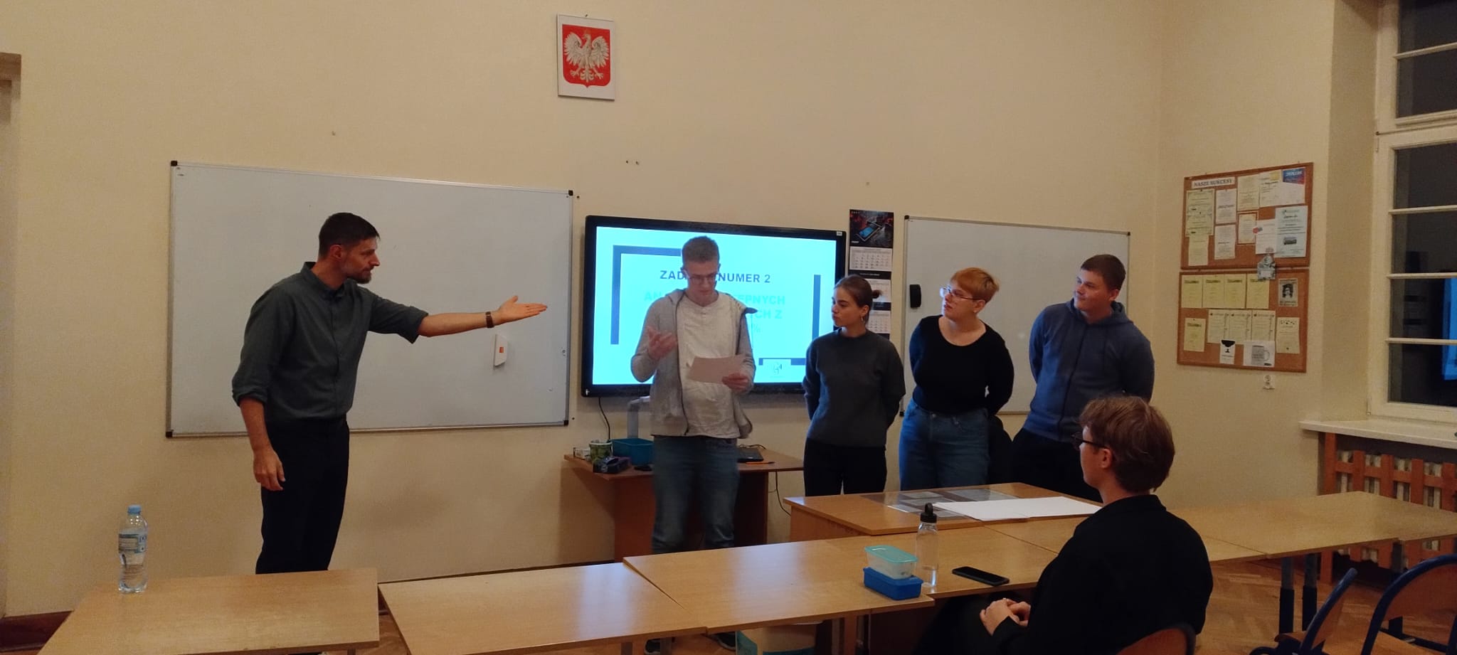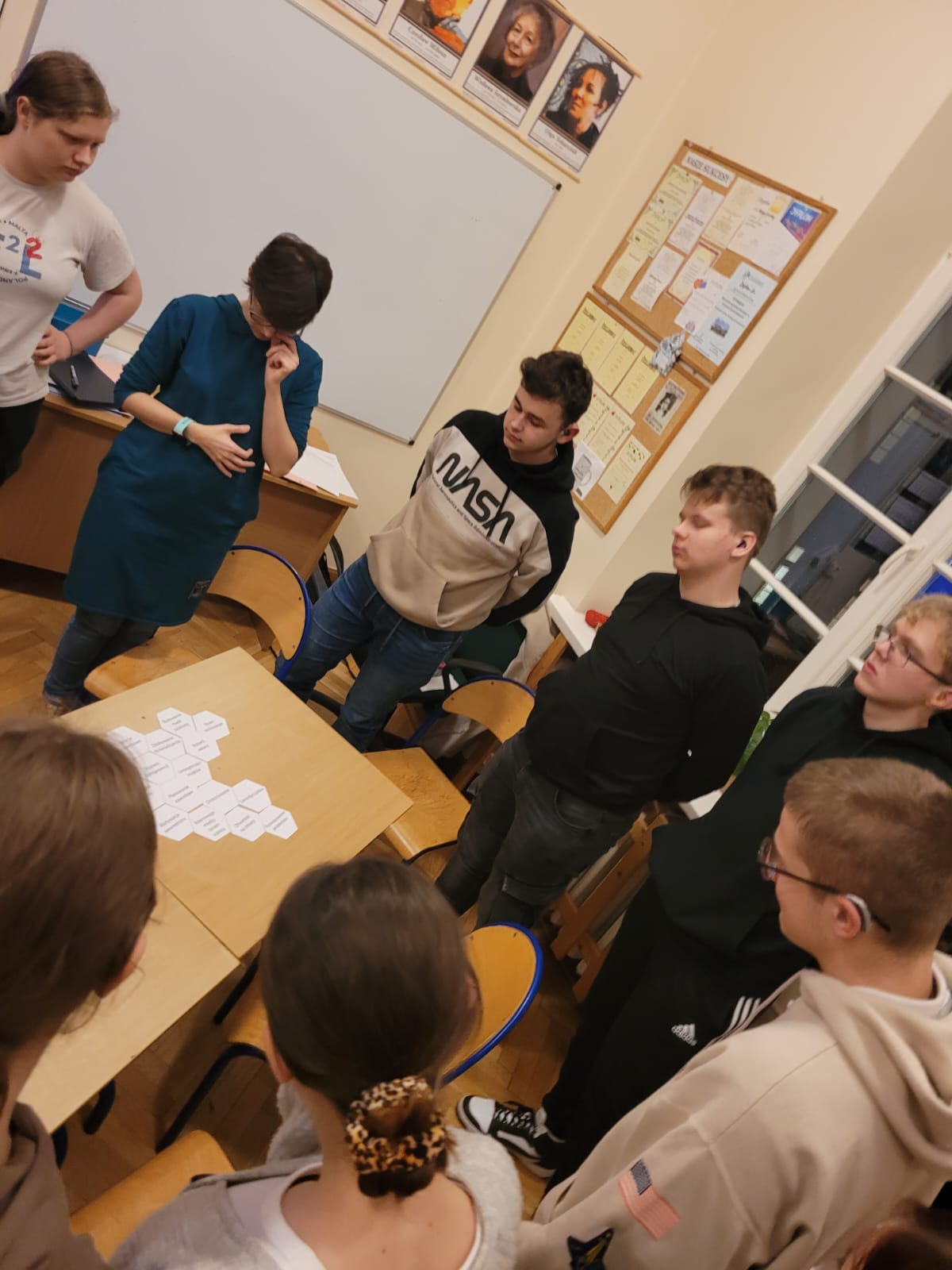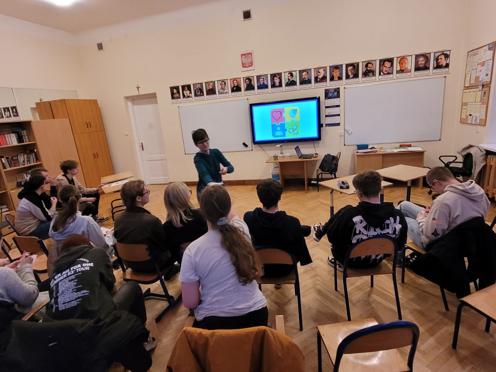 Pan Marcin wygłosił prelekcję na temat pięciu najczęściej wykorzystywanych form prawnych działalności: jednoosobowej działalności gospodarczej, fundacji, stowarzyszenia, spółki z o.o. oraz spółki akcyjnej. Omówił ich zalety, wady, potencjalne zagrożenia oraz opłacalność zakładania poszczególnych form w zależności od sytuacji. Na zakończenie uczniowie wzięli udział w teście składającym się z kilkunastu pytań i poradzili sobie zaskakująco dobrze, co pokazuje, że uważnie śledzili przebieg prelekcji i starali się wynieść z niej jak najwięcej.