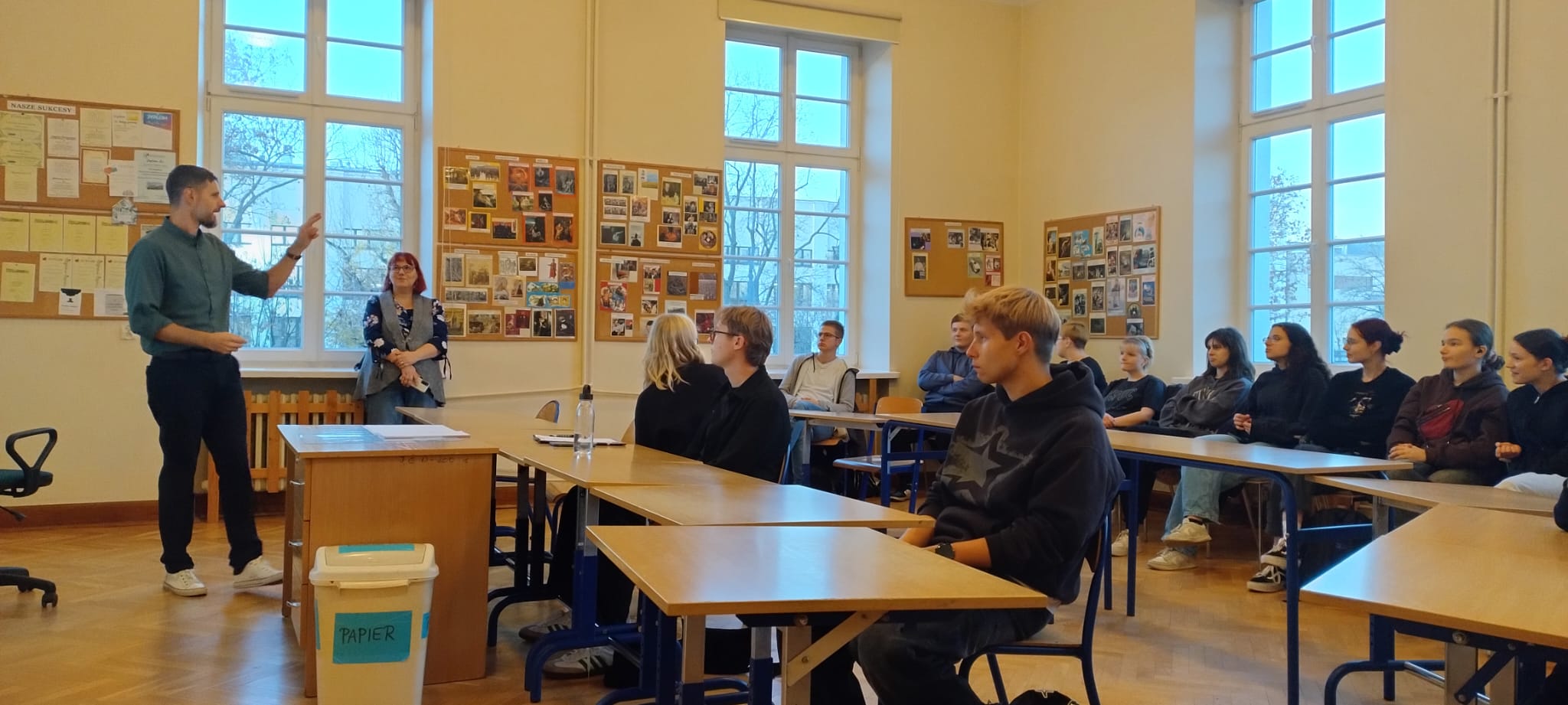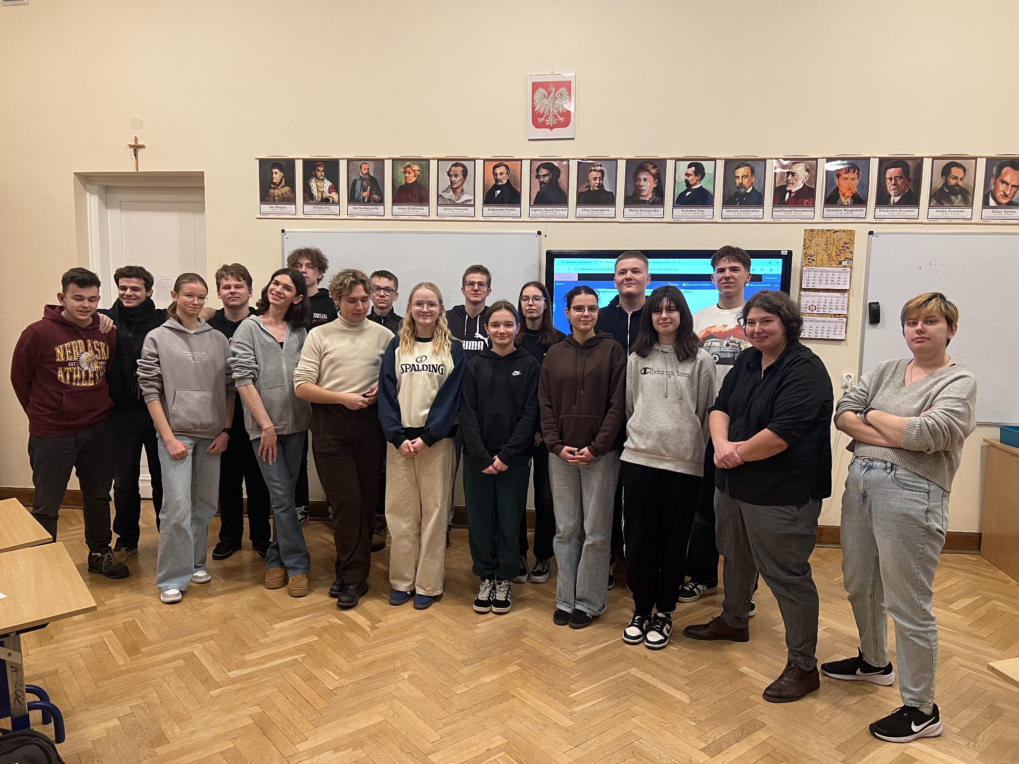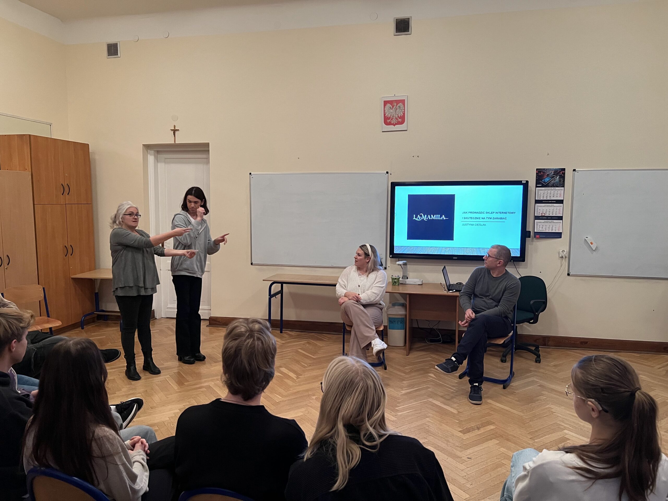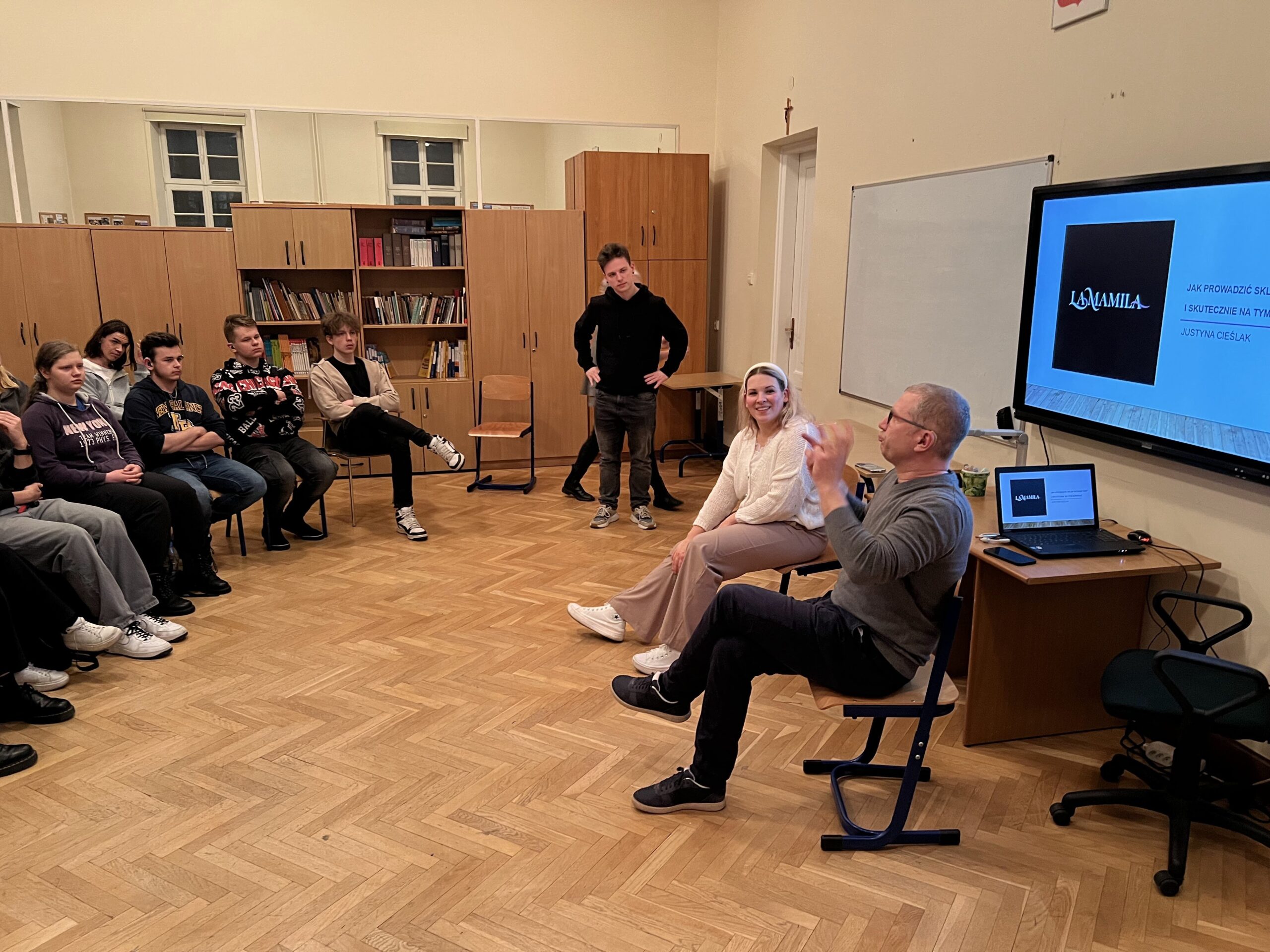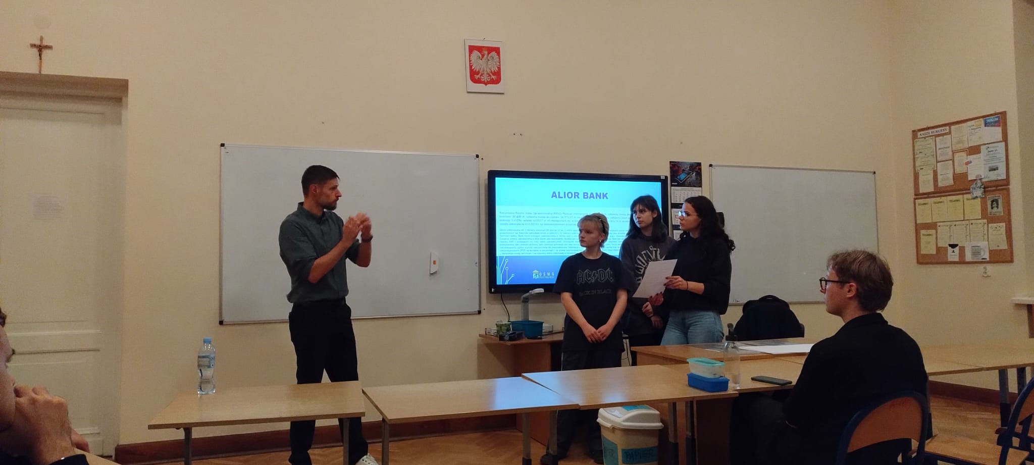 Podczas prelekcji o AI w biznesie uczestnicy przekonali się, że sztuczna inteligencja nie jest zagrożeniem, lecz narzędziem wspierającym rozwój firm. Wystąpienie było niczym zastrzyk technologicznej energii! Pan Artur obalił mity na temat AI i zaprezentował jej praktyczne zastosowania w marketingu, analizie danych, rozliczeniach finansowych czy obsłudze klienta. Prelegent podkreślił też znaczenie odpowiedzialnego i etycznego korzystania z nowych technologii. Uczniowie aktywnie włączali się w dyskusję, zadawali pytania i dzielili się własnymi spostrzeżeniami. Było sporo śmiechu, interakcji i momentów “Wow, to naprawdę działa!”. Wydarzenie zakończyło się optymistycznym przesłaniem „AI to przyszłość, z której warto mądrze korzystać już dziś”.