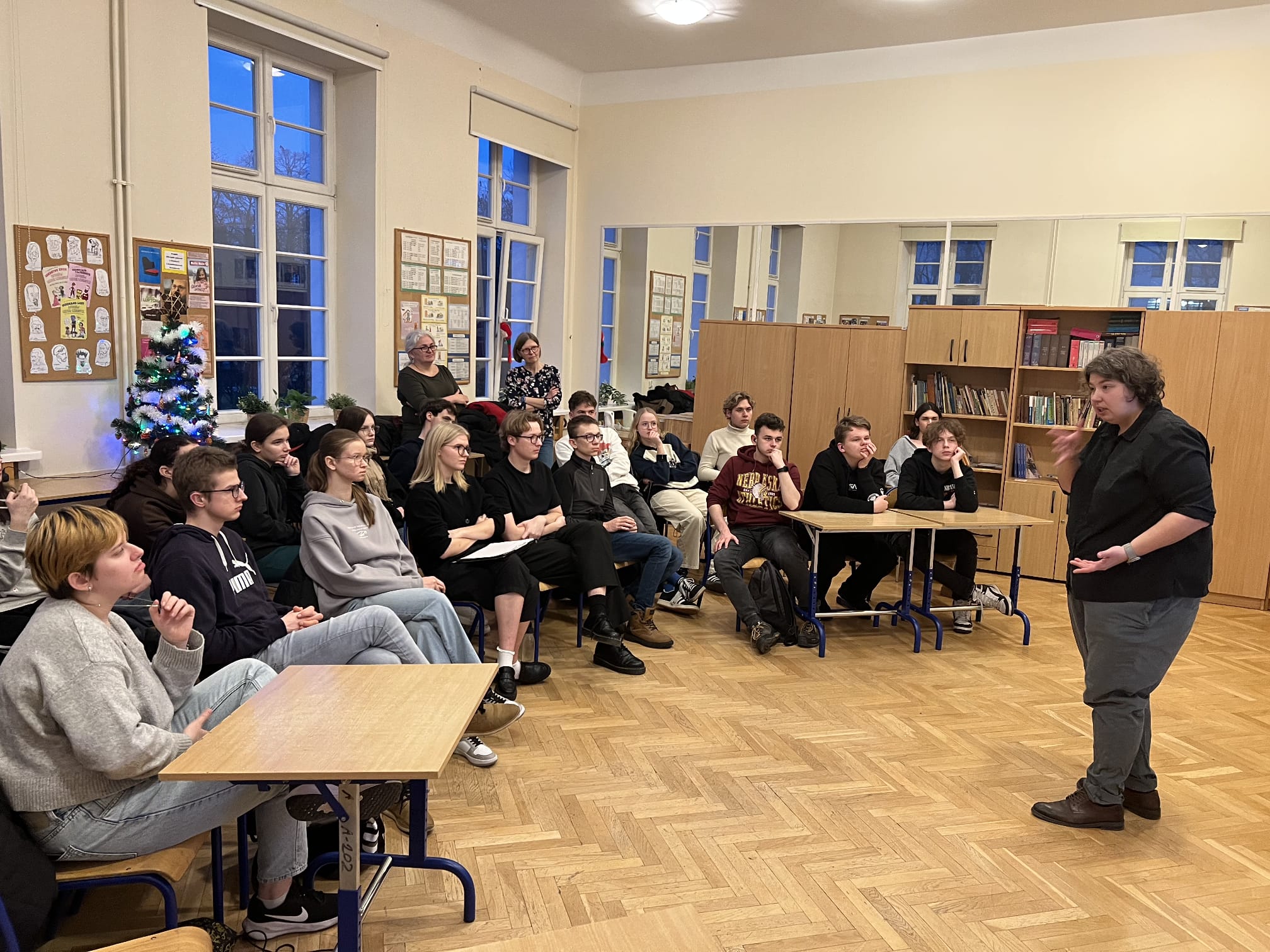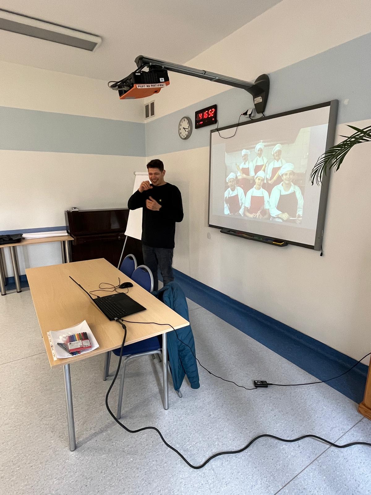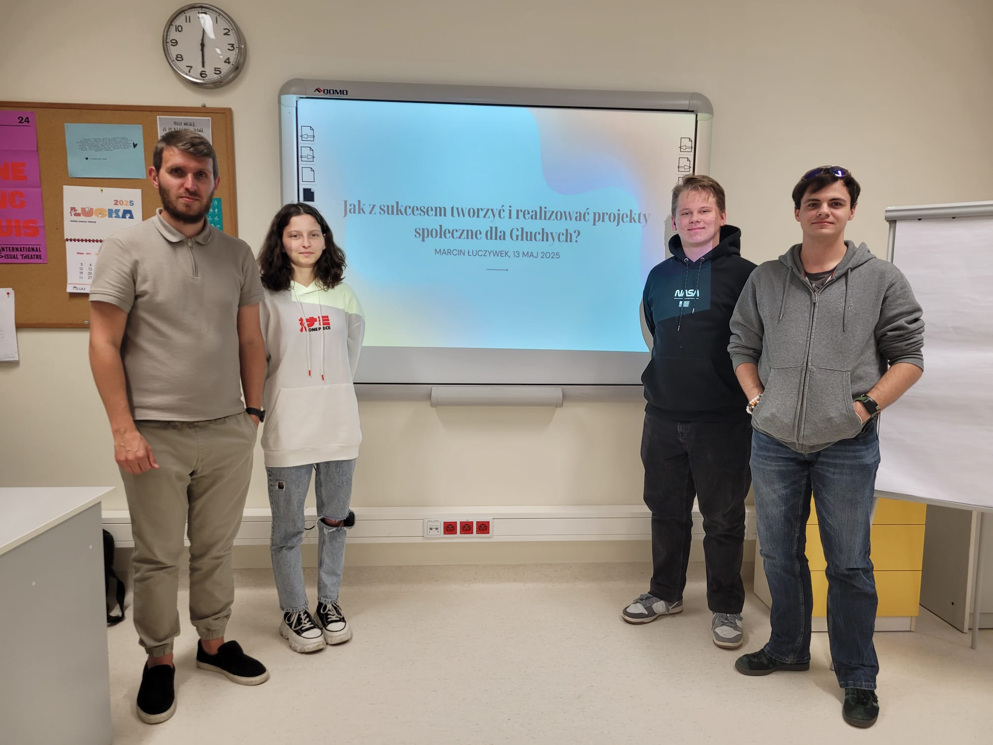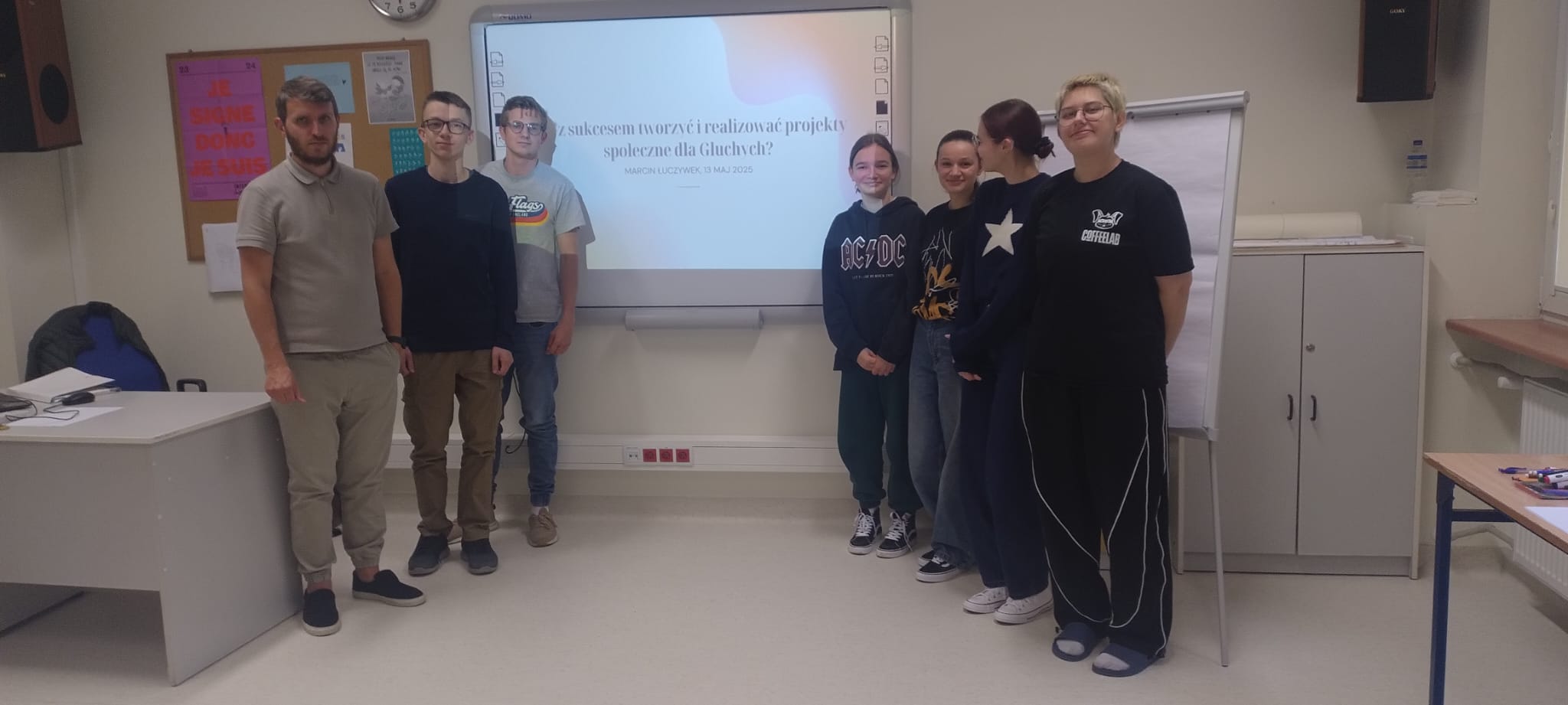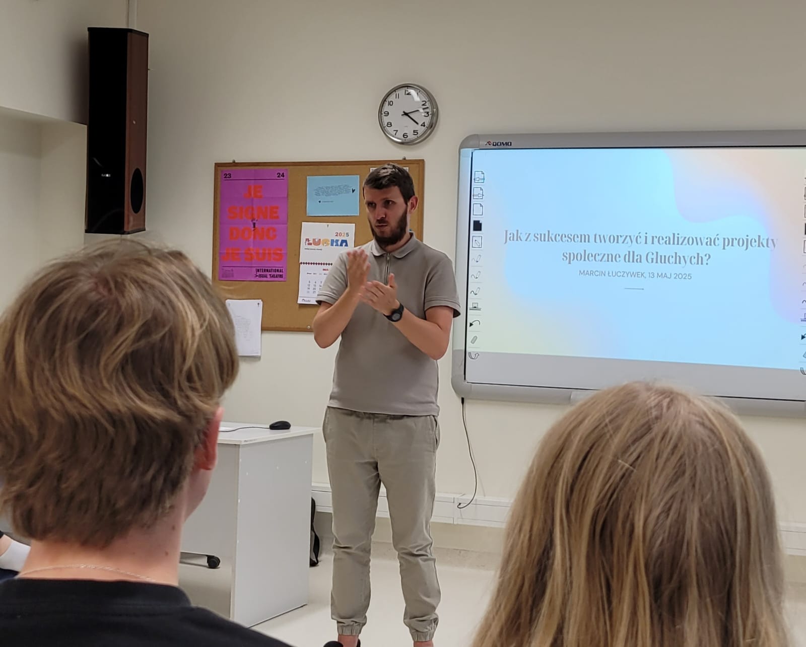 Prelegent podzielił się z uczniami swoim doświadczeniem w pisaniu i realizowaniu projektów skierowanych do różnych grup osób Głuchych. Prelegent opowiedział także o trudnościach związanych z biurokracją i koniecznością precyzyjnego planowania działań i budżetu. Uczniowie dzięki temu mieli okazję przekonać się, że choć jest to często niewdzięczna i wymagająca praca, to gdy projekt zostanie pozytywnie oceniony i zrealizowany, potrafi przynieść wiele radości osobom Głuchym w każdym wieku.