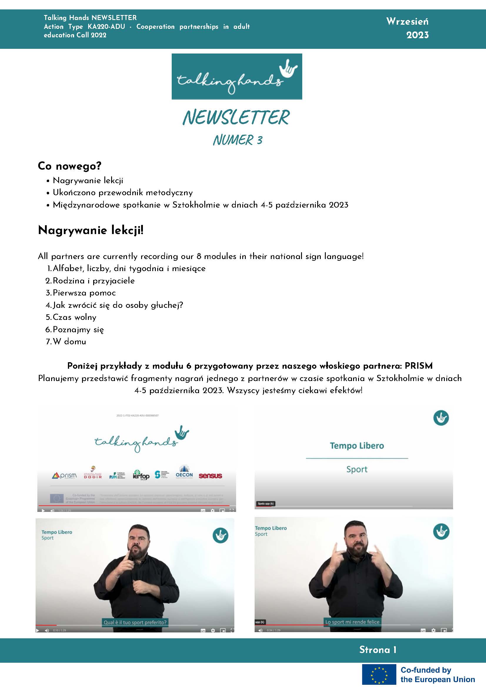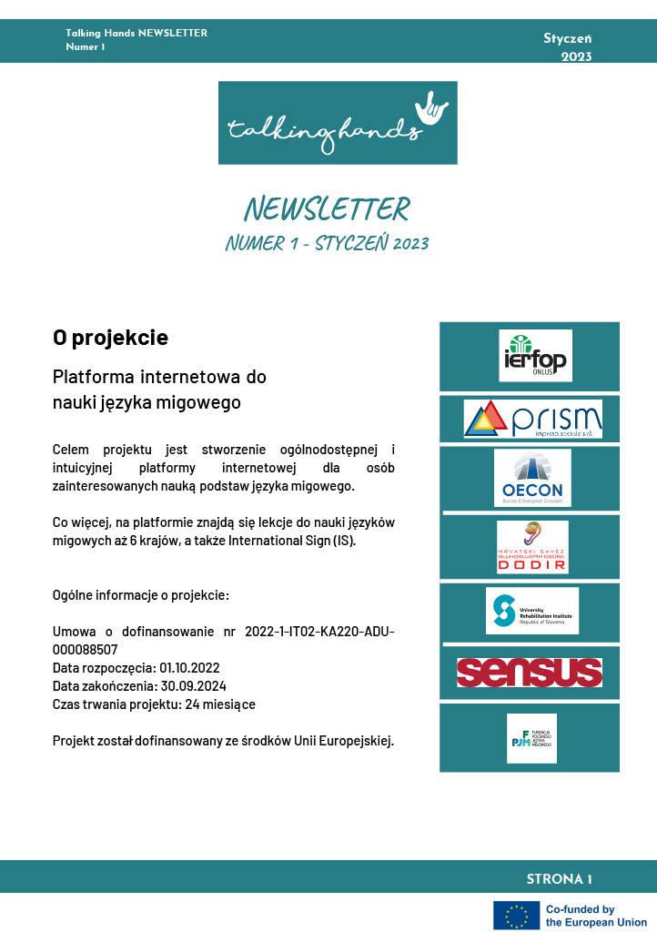 Celem projektu jest stworzenie ogólnodostępnej i intuicyjnej platformy internetowej dla osób zainteresowanych nauką podstaw języka migowego. Na platformie znajdą się lekcje do nauki języków migowych 6 europejskich krajów oraz International Sign (IS).
